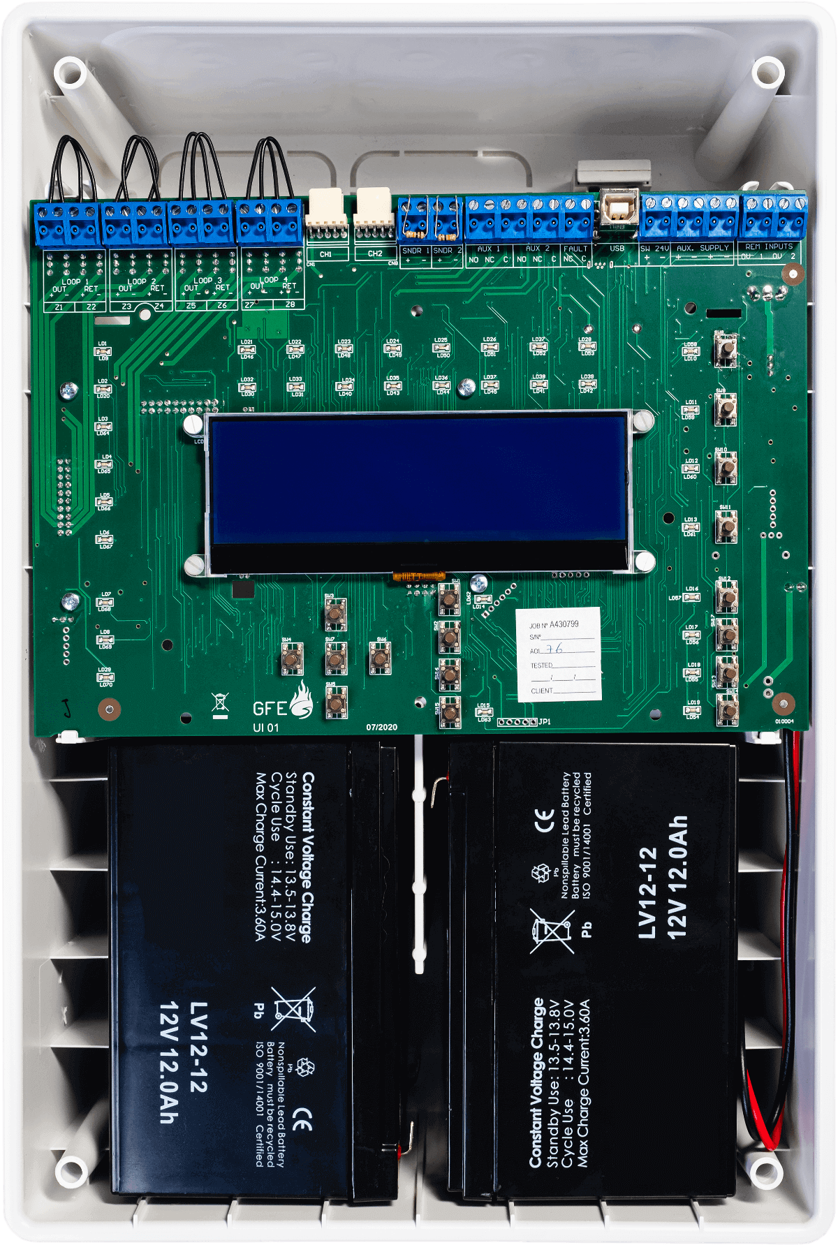 A szekrény belsejében van hely akár 7 AH 24V DC zárt ólom-savas tartalék akkumulátor beszerelésére, amely biztosítja a rendkívül alacsony energiafogyasztású GEKKO és ZEOS kapcsolódó eszközök akkumulátorellátását.